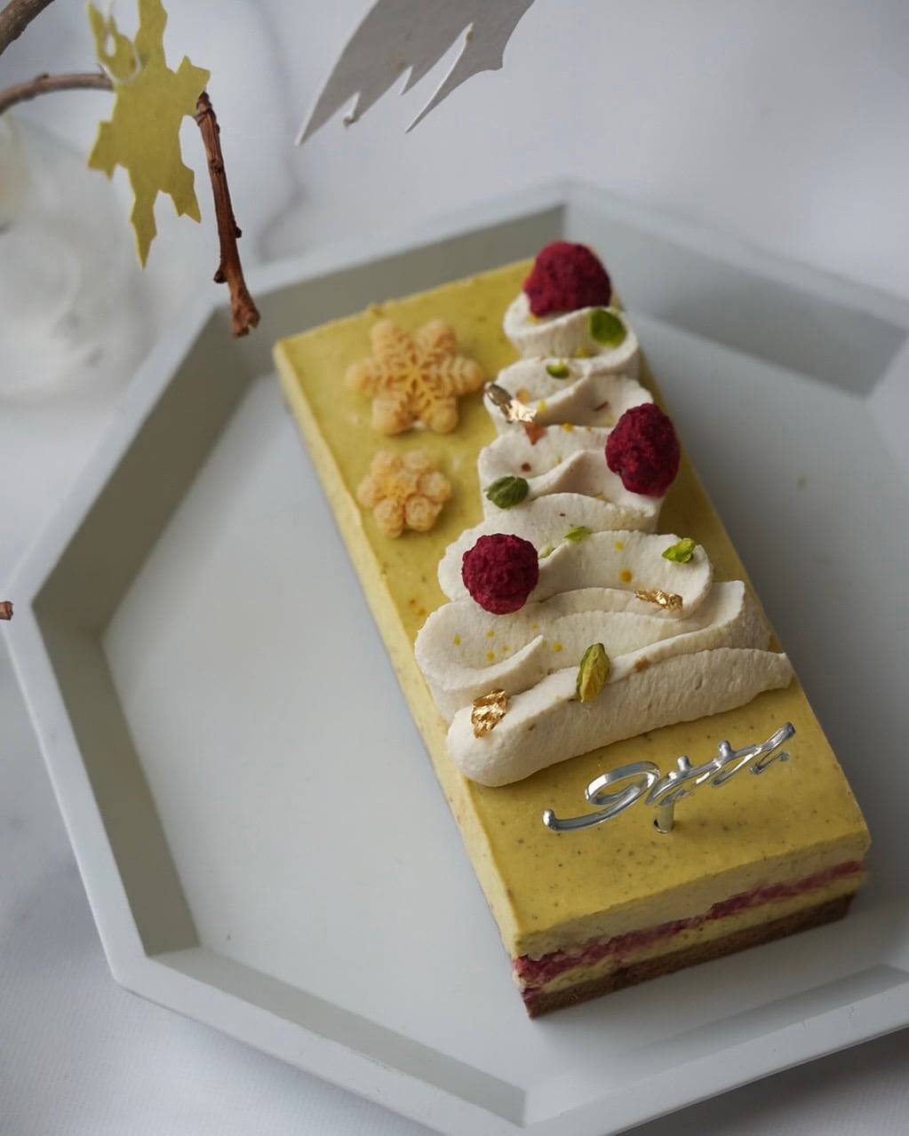 大人のためのリッチな、ピスタチオ好きには堪らないノエルケーキです。