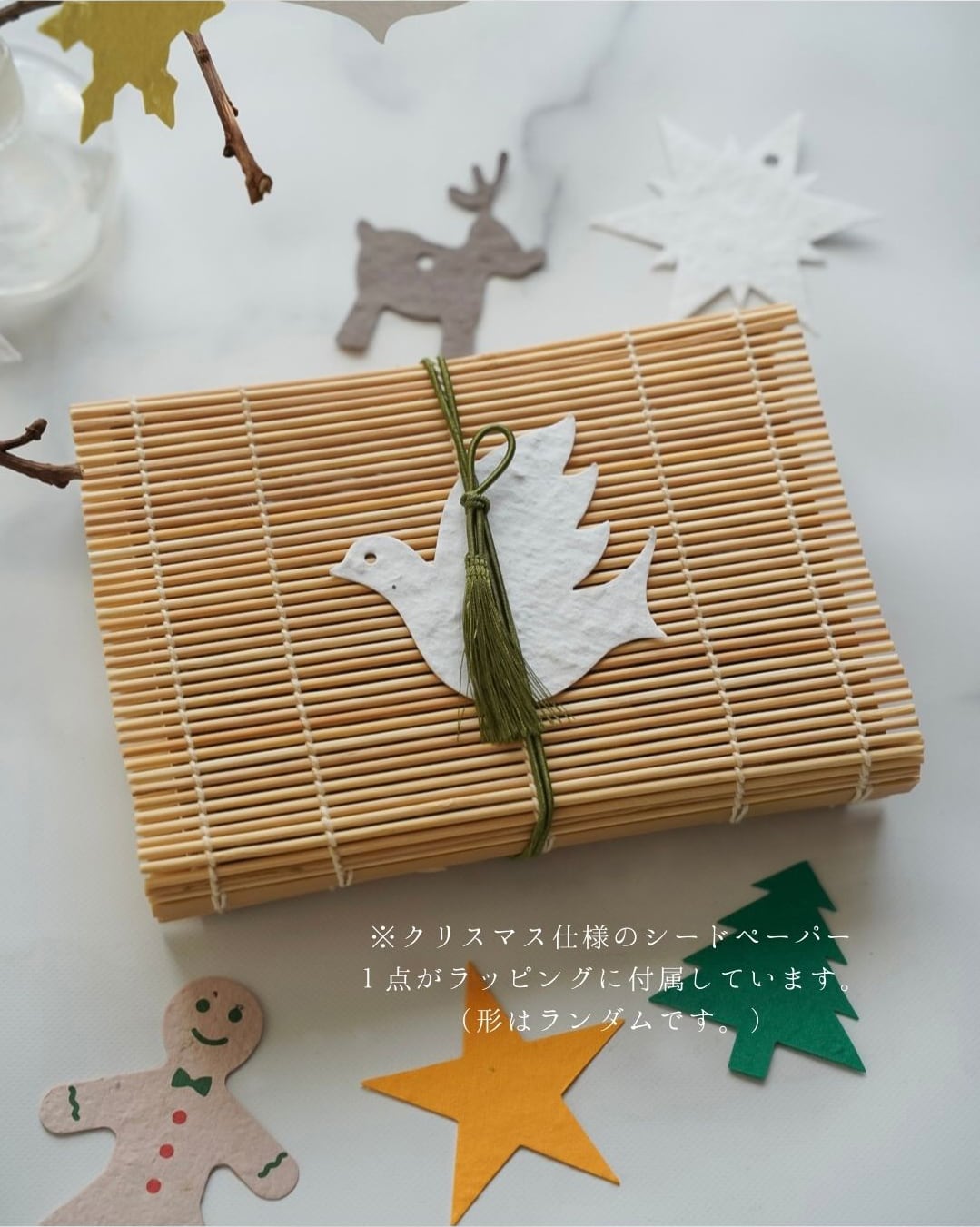 毎年大人気の“和シュトーレン”に、オーナメント型ローチョコレート、ヴィーガンジンジャーブレッドクッキー、クリスマス仕様のシードペーパーを詰め合わせた、特別なホリデーセットです。