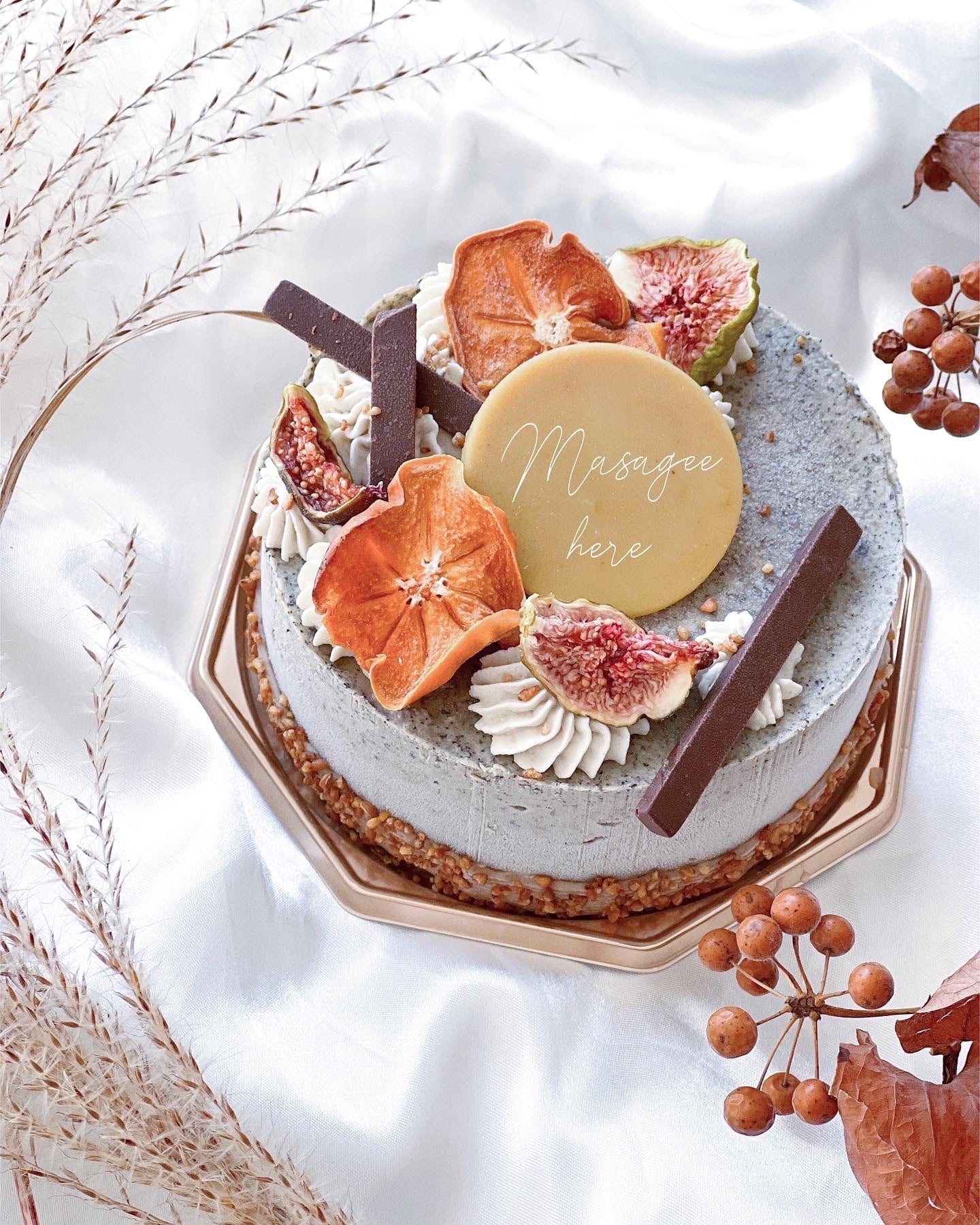 また冷凍配送のため、生のフルーツのデコレーションは不可です。(生地本体にフルーツを練りこむことは可能です。)その代わり、フルーツの場合はフリーズドライやドライのものを使用します。生のフルーツデコレーションご希望の場合は工房(葉山町)での直接受け渡しのみ可能です。ご希望の方はコンタクトフォームからお問い合わせください。